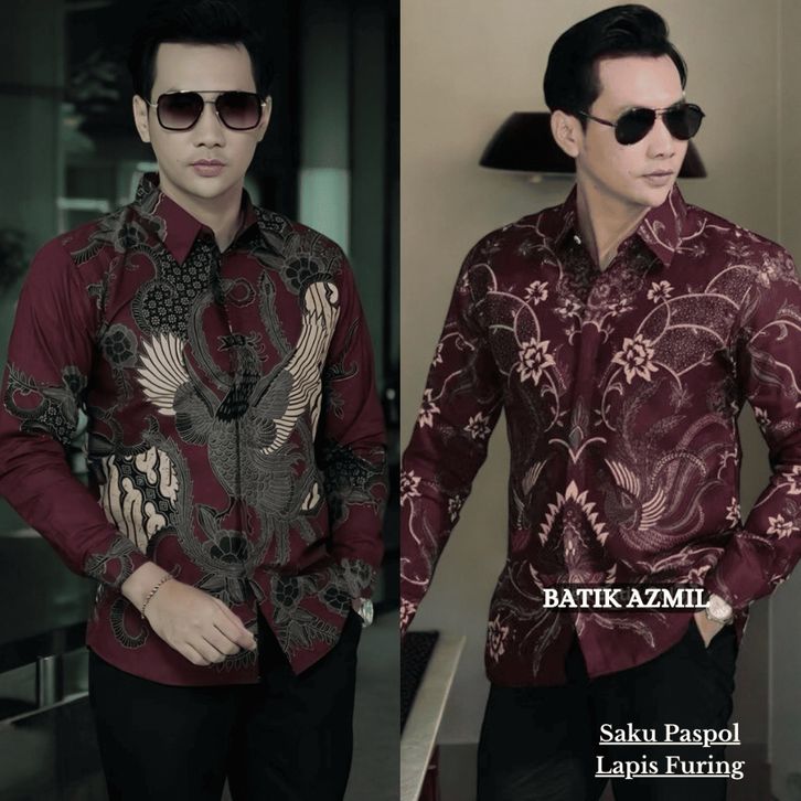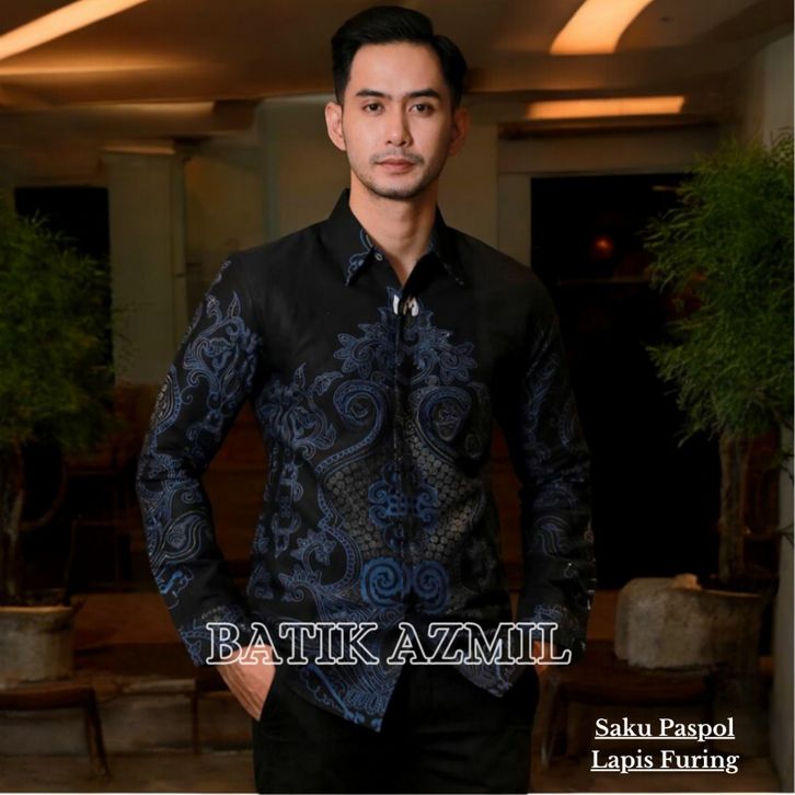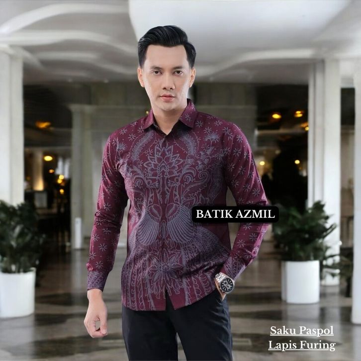 Baju Kemeja Batik Pria Lengan Panjang Lapis Furing BATIK AZMIL HRB026 motif KERATONAN Kode 005 size M L XL XXL Reguler