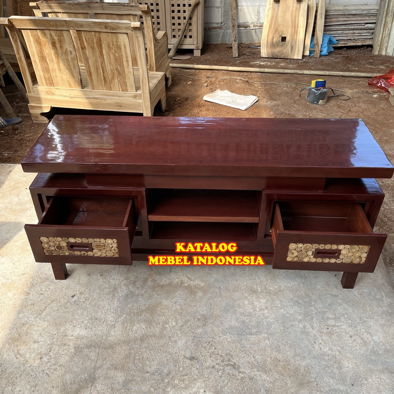 Bufet Meja TV Minimalis Retro Kayu Jati Terlaris Termurah