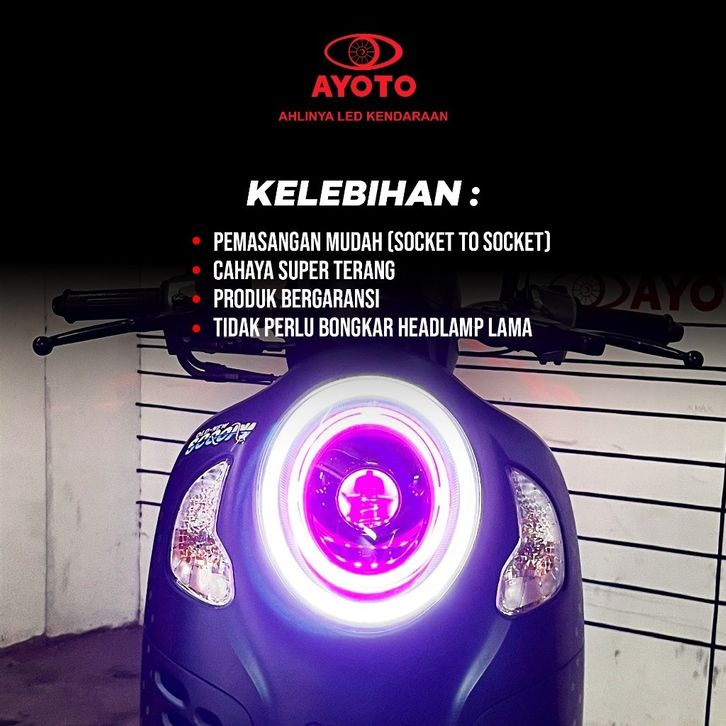 Lampu Ayoto Original Headlamp Reflektor Full Set New Scoopy BILED Projector 2INCHI 40WATT Ayoto Plug And Play Premium F
