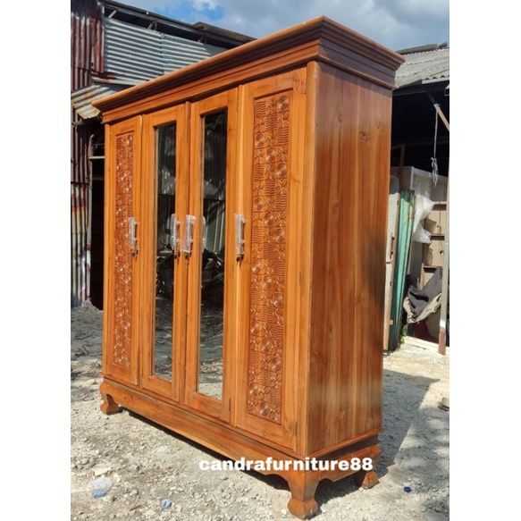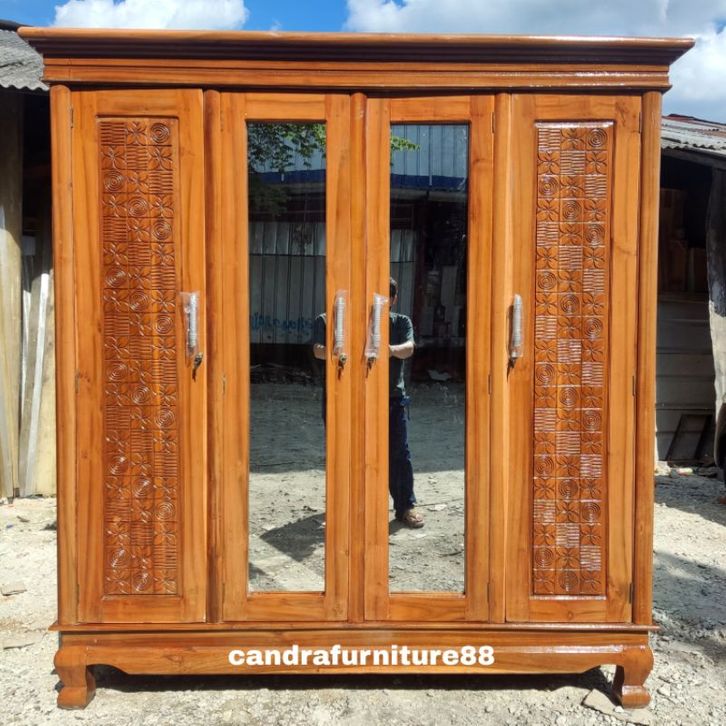 lemari pakaian jati 4 pintu hijab 3 rak 1 gantungan/candra furniture