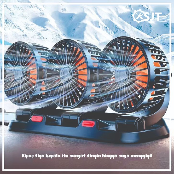 Kipas Mobil Original SJT - Kipas Angin Dashboard Pendingin Mobil 3 Kepala 12V/24V Multifungsi Rotasi 360