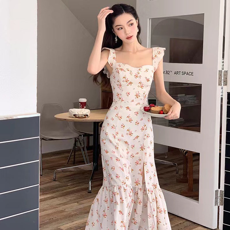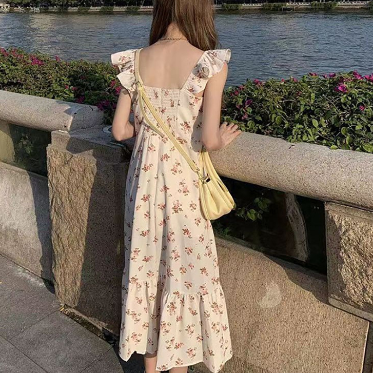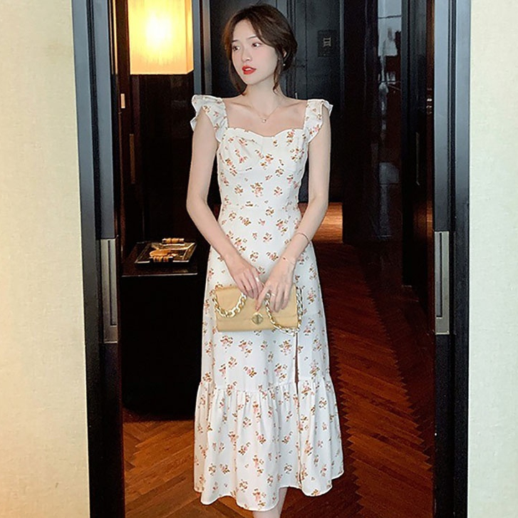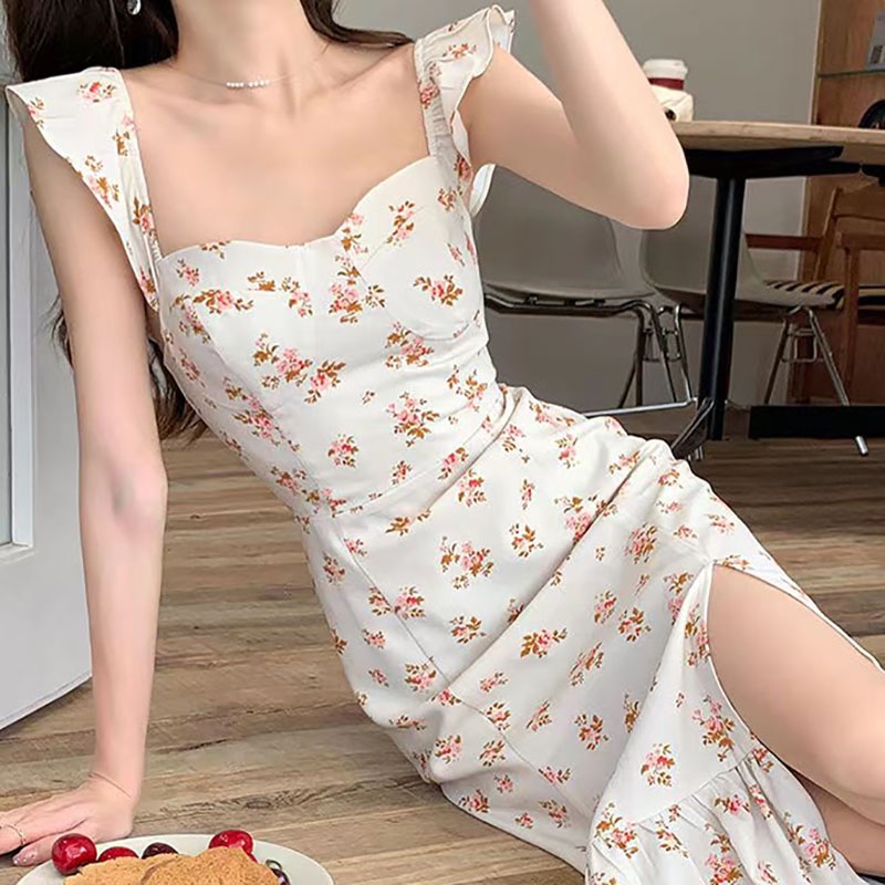 Newlan QZ081 Butterfly Sleeve Cream Midi Dress with Slit - Dress Casual Kasual/Korean Dress Korea Fashion Outfit/Daisy D