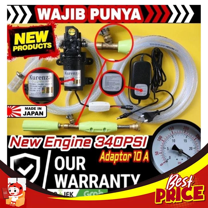 KURENZA Set Lengkap Mesin Cuci Motor 340psi 23.4 Bar 8 LPM Power Sprayer Alat Steam Jet Cleaner AC DC