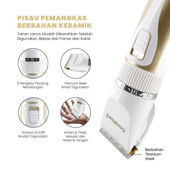 DORAHOMI Alat Cukur Rambut Elektrik Hair Clipper Mesin Pencukur Cas