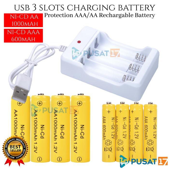 PUSAT17 BATERAI CAS AA 1000mAh AAA 600mAh BATTERY RECHARGEABLE CHARGER 3 SLOT AA/AAA BATRE ISI ULANG - Charger 3 Slot