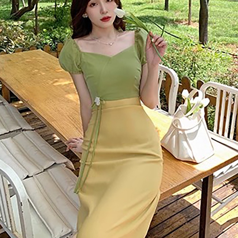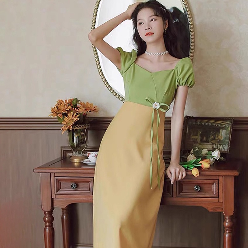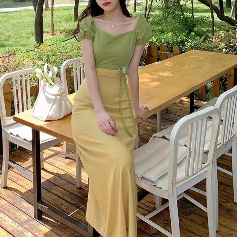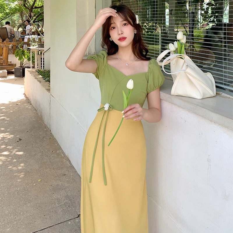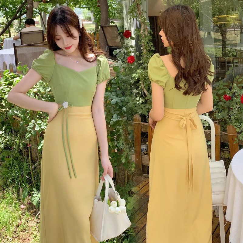 Newlan QZ101 Gaun Pesta Kelas Atas Korea Terbaru/dress korean style/long dress korea Musim Panas Boneka Baru Kerah Dress