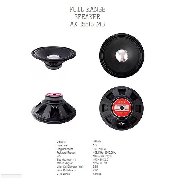 AUDAX Speaker 15 Inch Daya 600 Watt AX-15513 Full Range ASLI