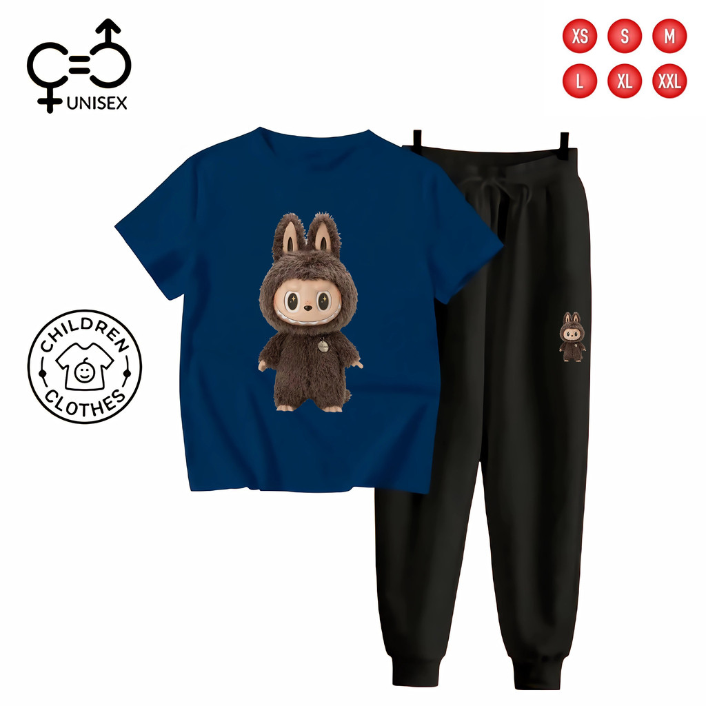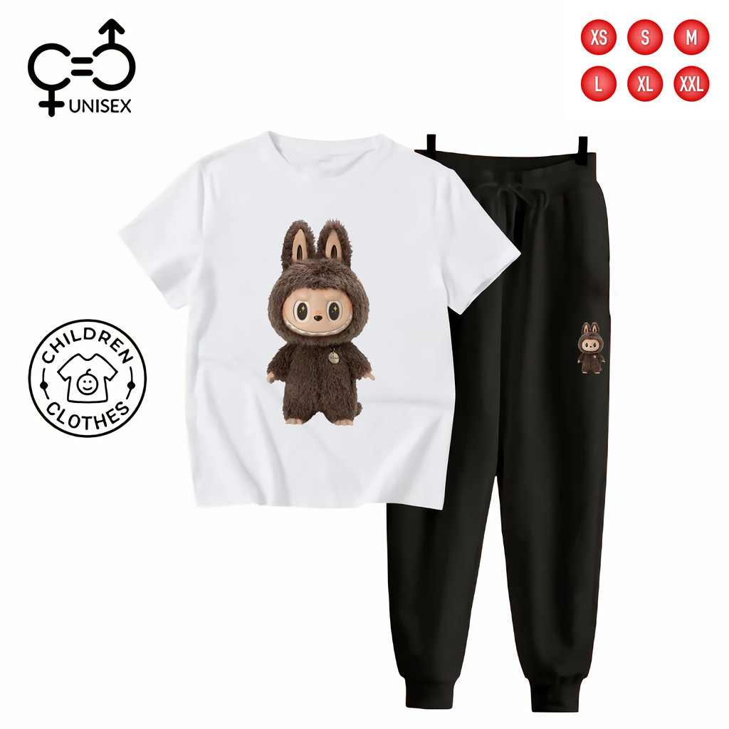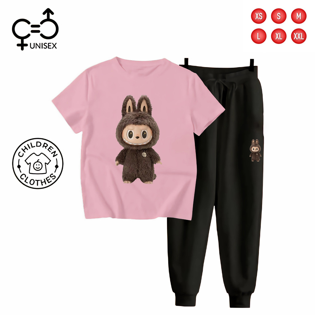 GC - SETELAN Anak Unisex KAOS + JOGGER Hitam - LABUBU DOLL