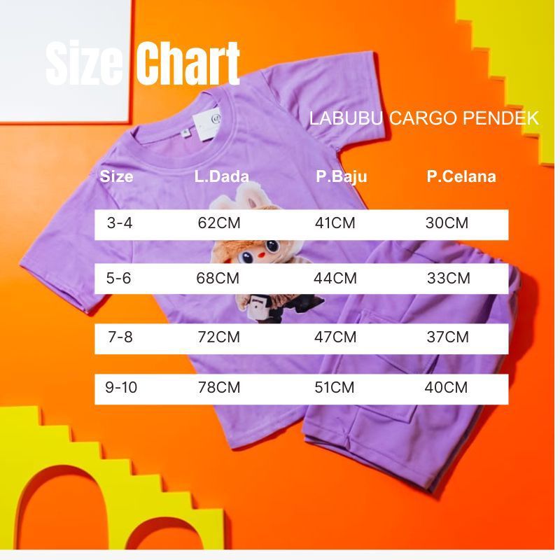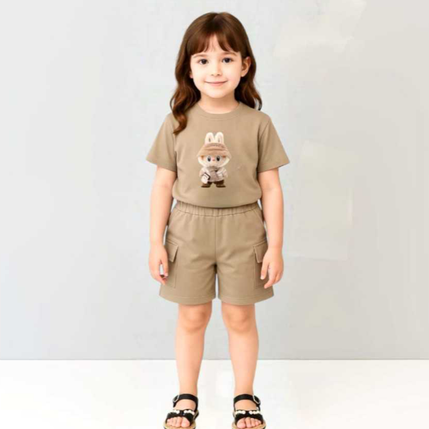 Setelan Kaos Labubu Model Celana Cargo Pendek 3-10 Tahun // Pakaian Labubu Anak Unisex Viral