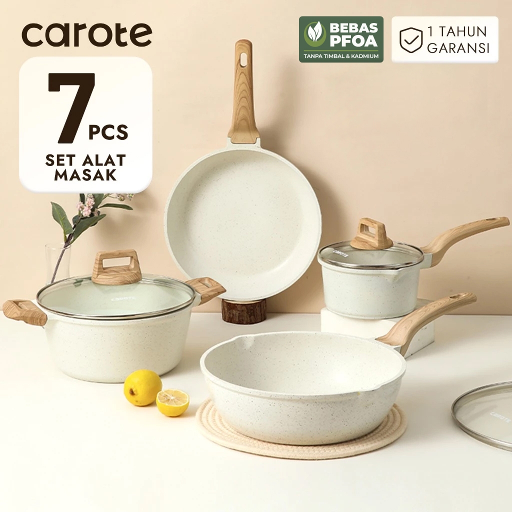 Panci Set Anti Lengket Carote Granit Putih Peralatan 7PCS Multifungsi Serbaguna