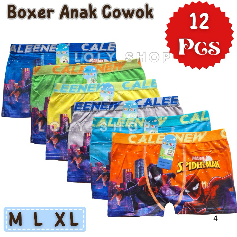 12Pcs - Celana Dalam BOXER Anak Laki-Laki Murah / Boxer Anak Cowok Katun Gambar