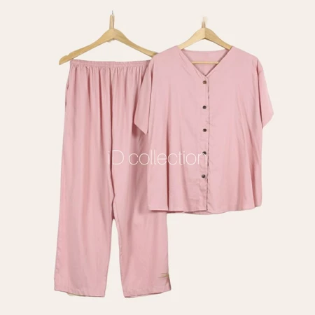 Piyama Wanita Dewasa Lengan Pendek Polos Kancing Depan Baju Tidur Wanita Bahan Rayon Busui Friendly
