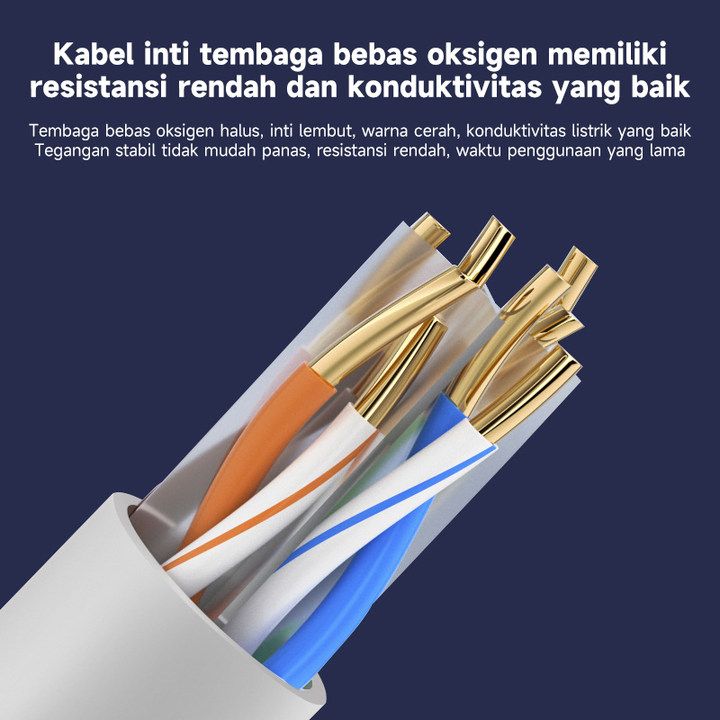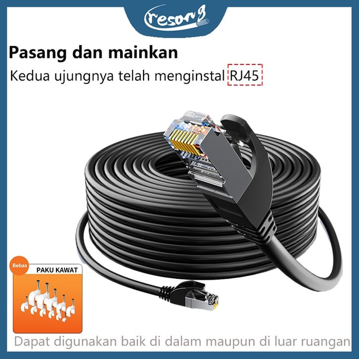 Kabel Internet Lan Luar Ruang Resong1000Mbps10M-100M Kabel Ethernet berlapis emas Cat6 RJ45 UTP