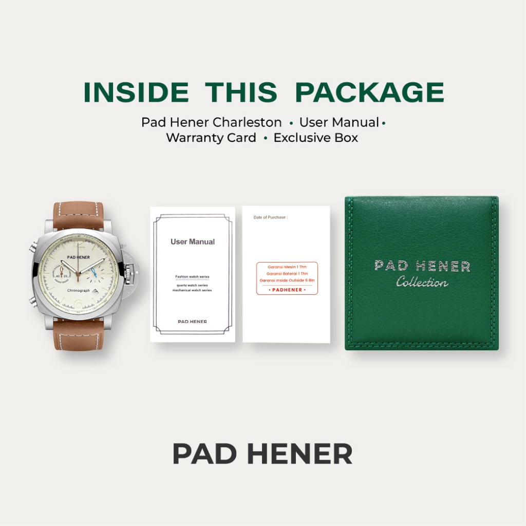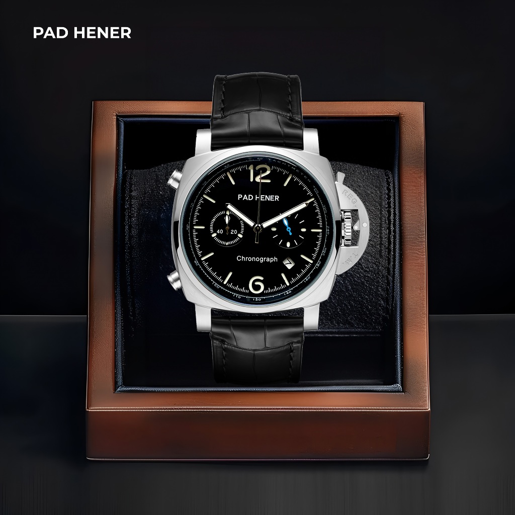 [Mall] Jam Tangan Pria Pad Hener Charleston Chronograph Kulit Mewah Quartz Harga Terjangkau Box Exclusive Original