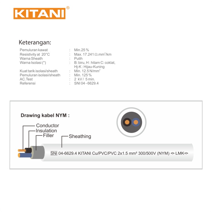 GRATIS ONGKIR KITANI - NYM 2x1.5 mm² - 50 Meter - Kabel Tembaga Kawat