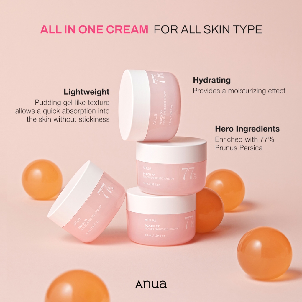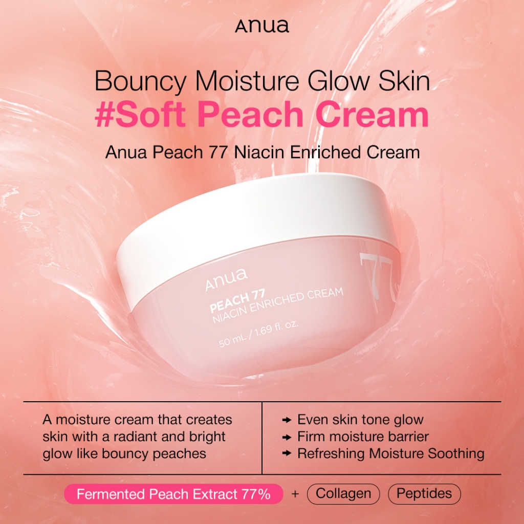 PELEMBAB WAJAH ANUA PEACH 77 NIACIN ENRICHED CREAM 50ML KRIM MELEMBAPKAN DAN MENCERAHKAN KULIT