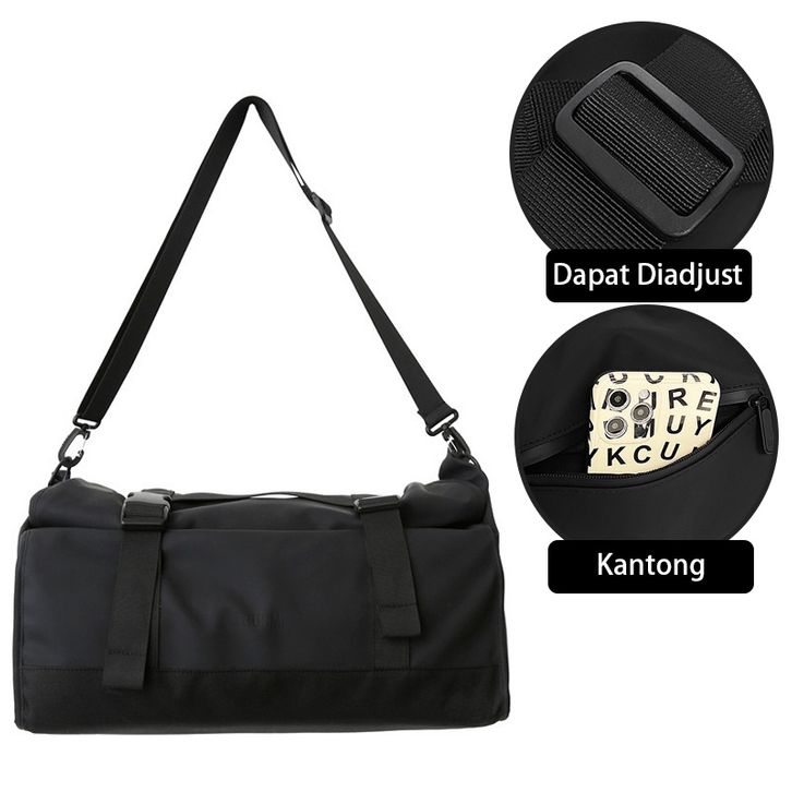 Tas Travel Bag Tas Fitness Gym Pria Waterproof Duffel Bag Tas Travel Lipat Hitam Tas Olahraga