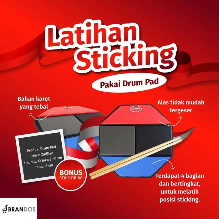 Drum & Perkusi Drum Pad 12 Inch Zildjian Tingkat BONUS Stick Drumpad DPD-512 STKD