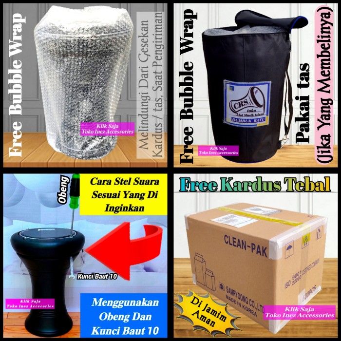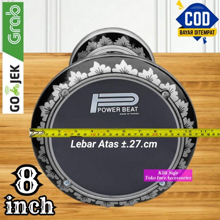 Drum & Perkusi Darbuka Kayu / Dumbuk Marawis 8 inc Silver Hitam Power Beat Hitam
