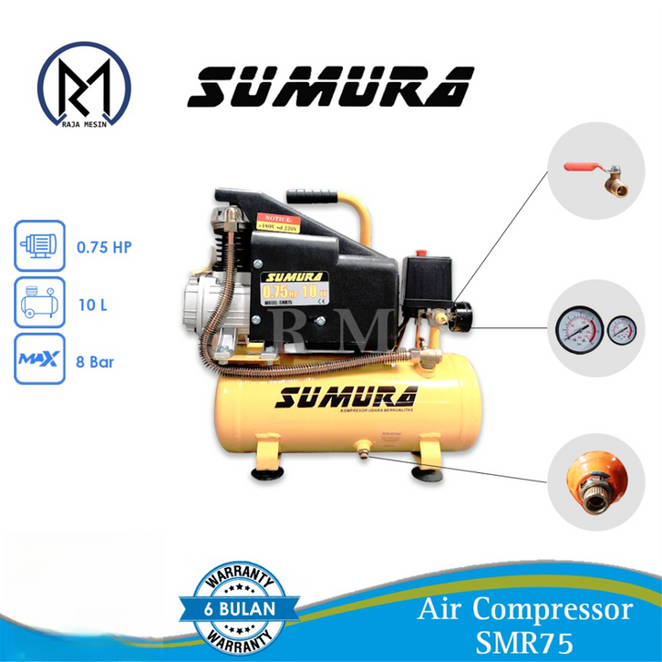 Kompresor Angin Listrik / Air Compressor Matrix MTX75 (0.75HP, 10 Liter) / Air Compressor Sumura SMR75 (0.75HP, 10 Liter