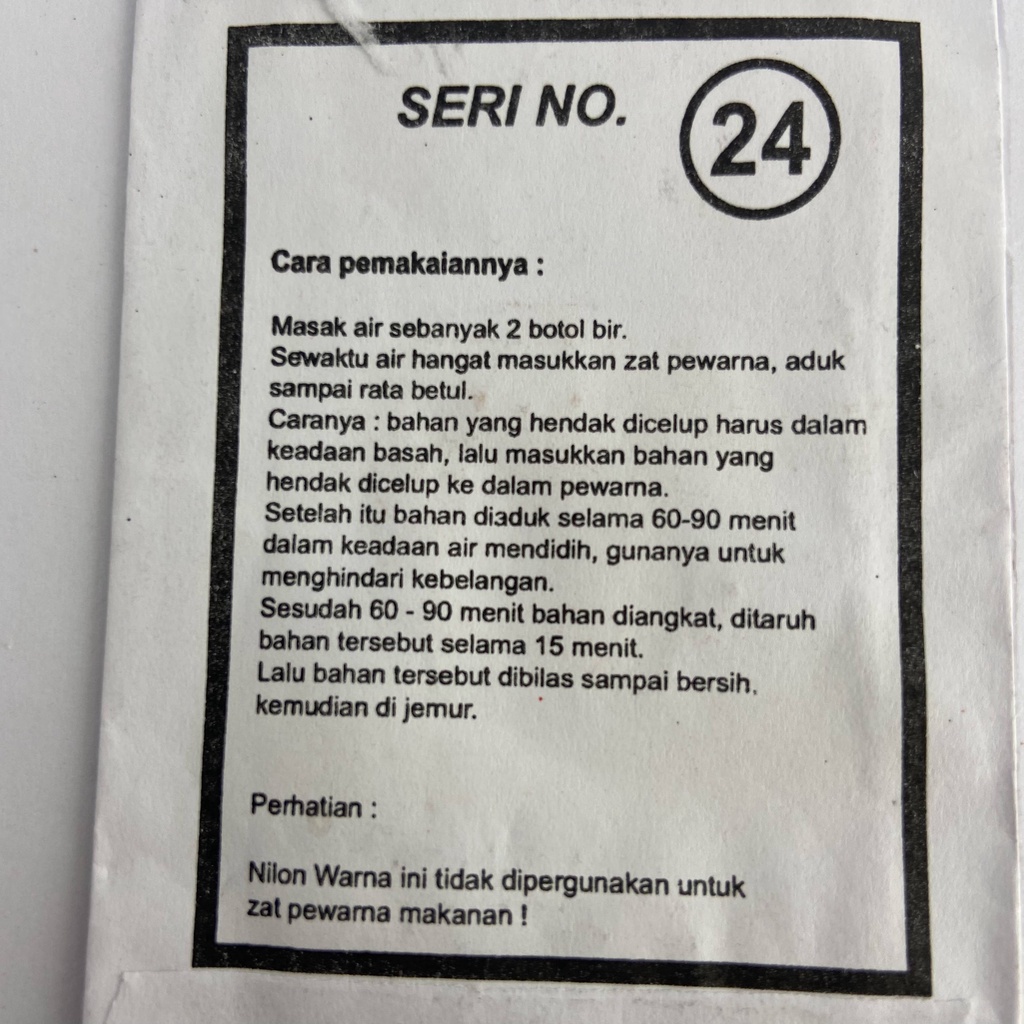 Wenter Cap NILON no 1 PEWARNA ORI Warna Wantex Pewarna Kain Pakaian Textil Permanen Jeans Silk Tie Dye Prakarya Kerajinan Perlengkapan Paint Painting Air Water DIY Pewarna
