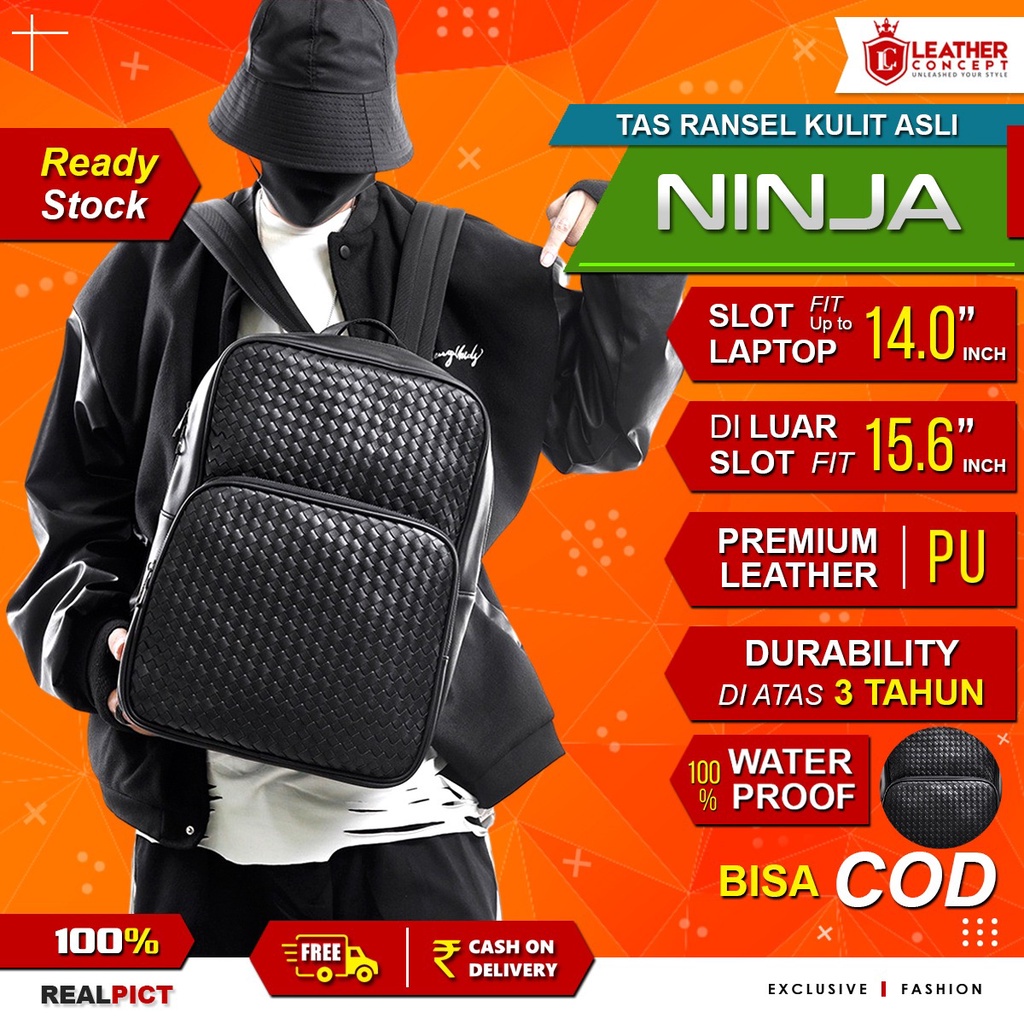 LEATHER CONCEPT Tas Ransel Kulit Pria Anyaman Tas Kulit Pria BackPack Kulit Pria NINJA