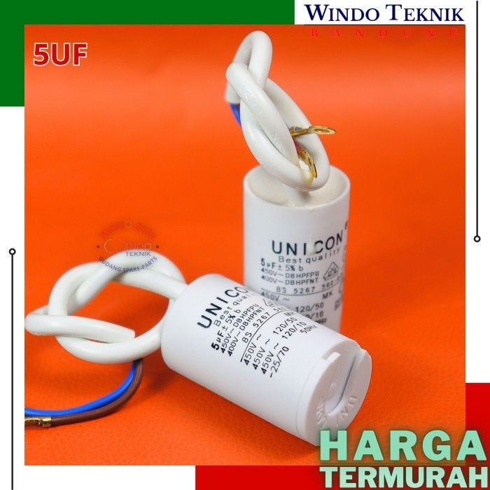 Terlaris KAPASITOR 5UF BULAT SINGLE UNICON / CAPASITOR MESIN CUCI / POMPA AIR Promo