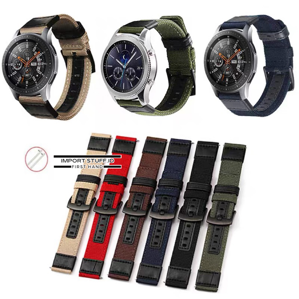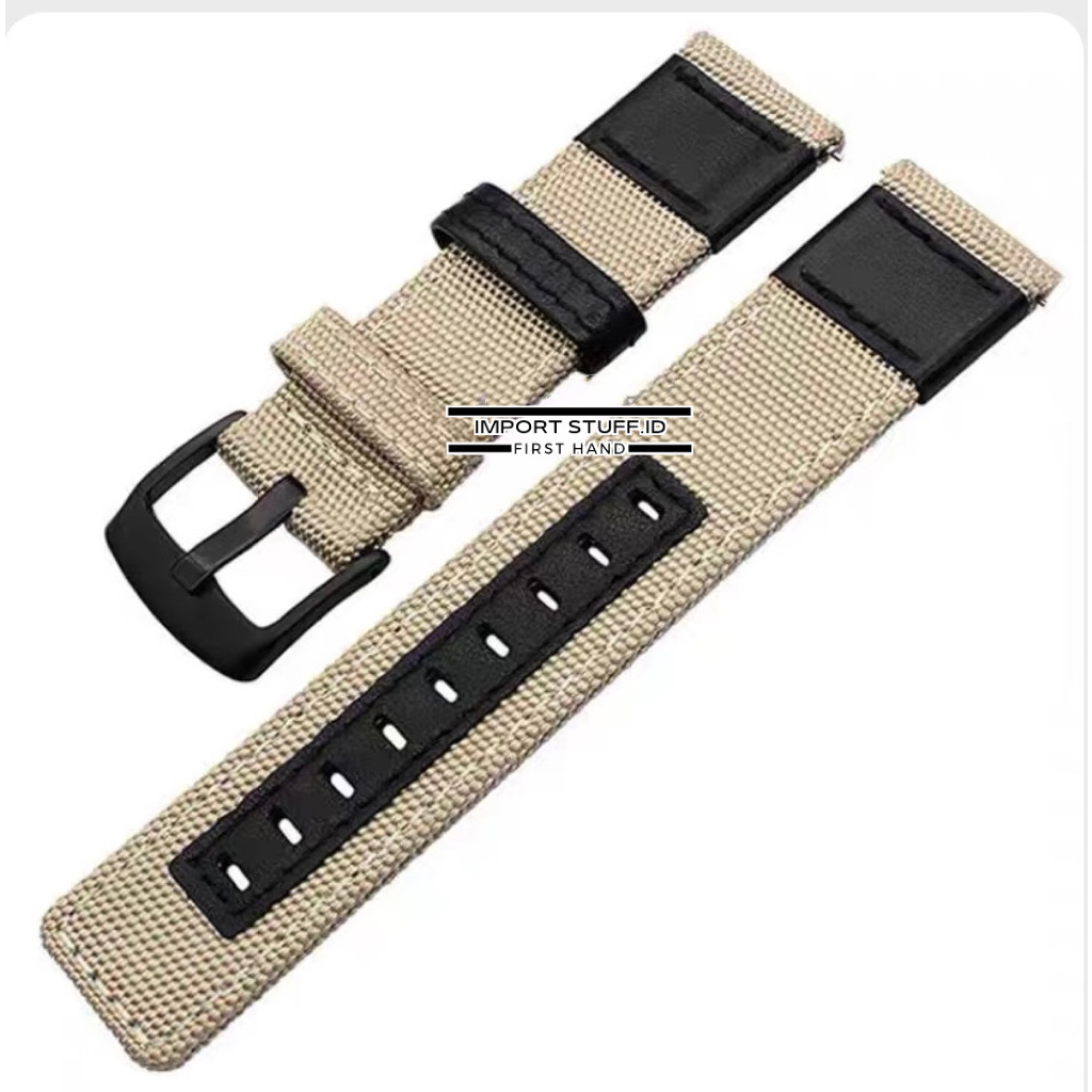 Strap universal 20mm 22mm tali jam kanvas nato kombi kulit nilon untuk jam tangan samsung amazfit smartwatch lainnya