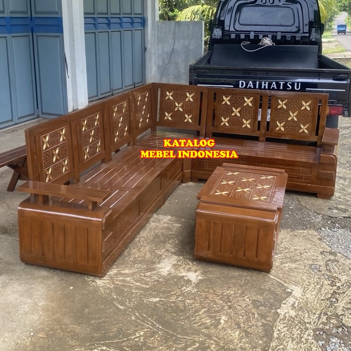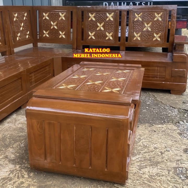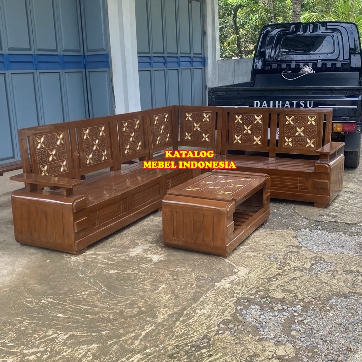 Kursi Sudut Jati Domini Lengkap dengan Meja - Mebel Jepara - Furniture