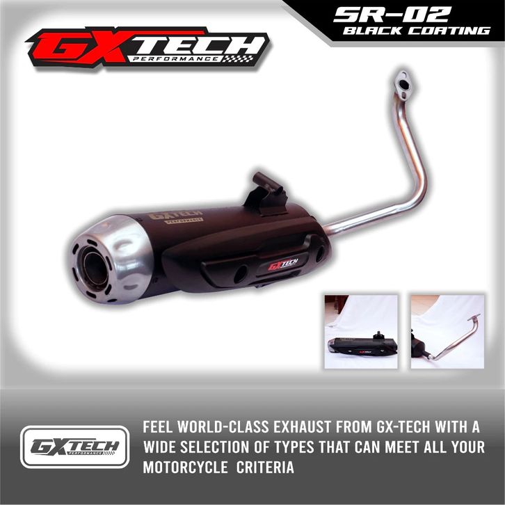 KNALPOT GX TECH PERFOMANCE KNALPOT STANDAR RACING SR-02 BLACK COATING BASS ADEM INLET 26MM 28MM