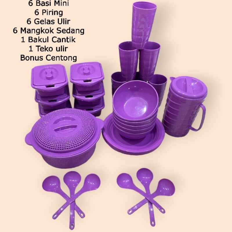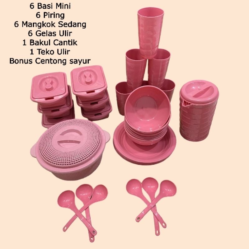 Paket Set Prasmanan Lengkap isi 32 pcs (6 Basi Mini + 6 Piring Makan+ 6 Mangkok Sedang+ 6 Gelas Ulir + 1 Teko ulir + 1 B