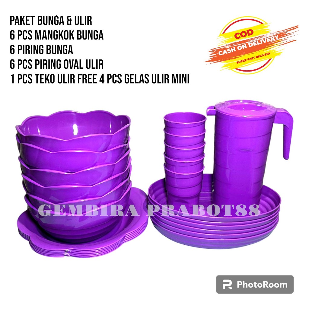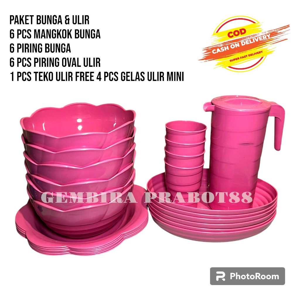 PAKET 23 PCS BUNGA 6 PCS PIRING BUNGA 6 PCS MANGKOK BUNGA 6 PCS PIRING OVAL 1 PCS TEKO FREE 4 GELAS ULIR MINI
