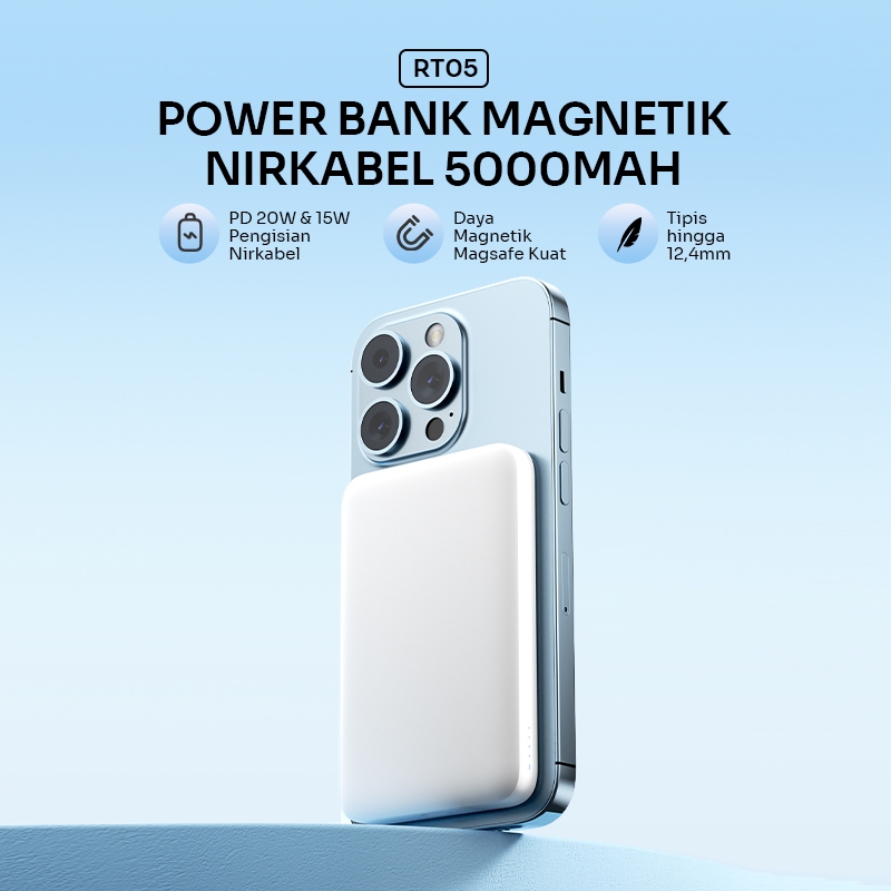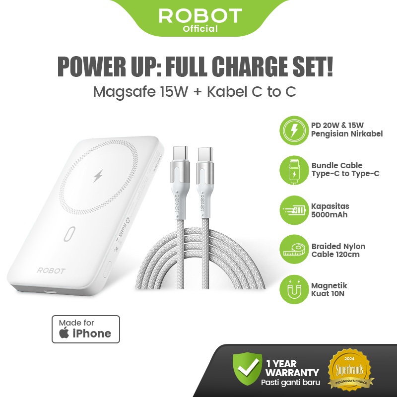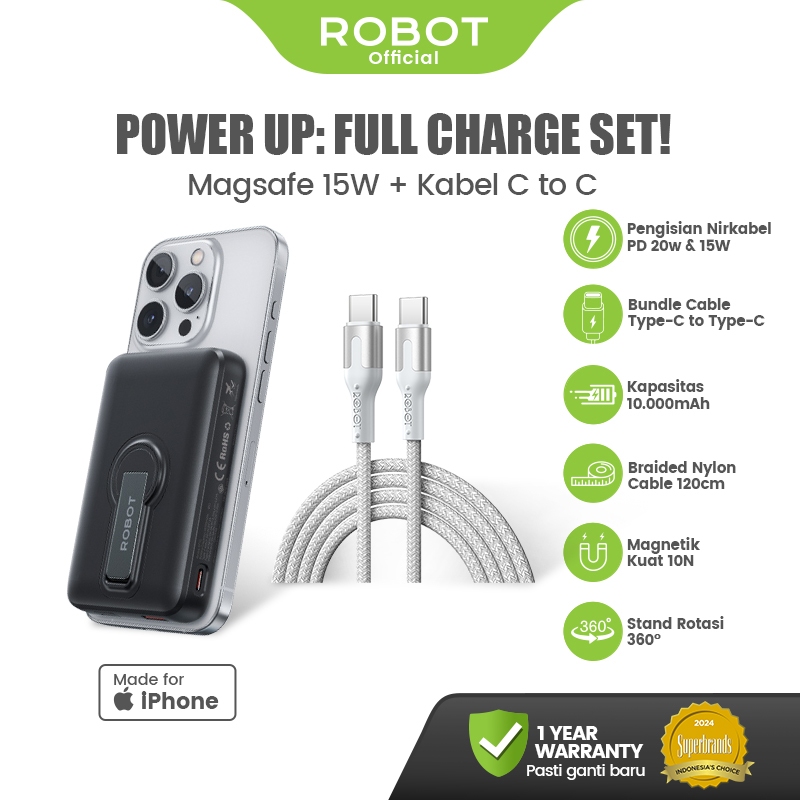 Power Bank Robot Original BUNDLING Magsafe Wireless PD 20W & 15W Nirkabel with Cable Fast Charging 60W Type C to Type 3A