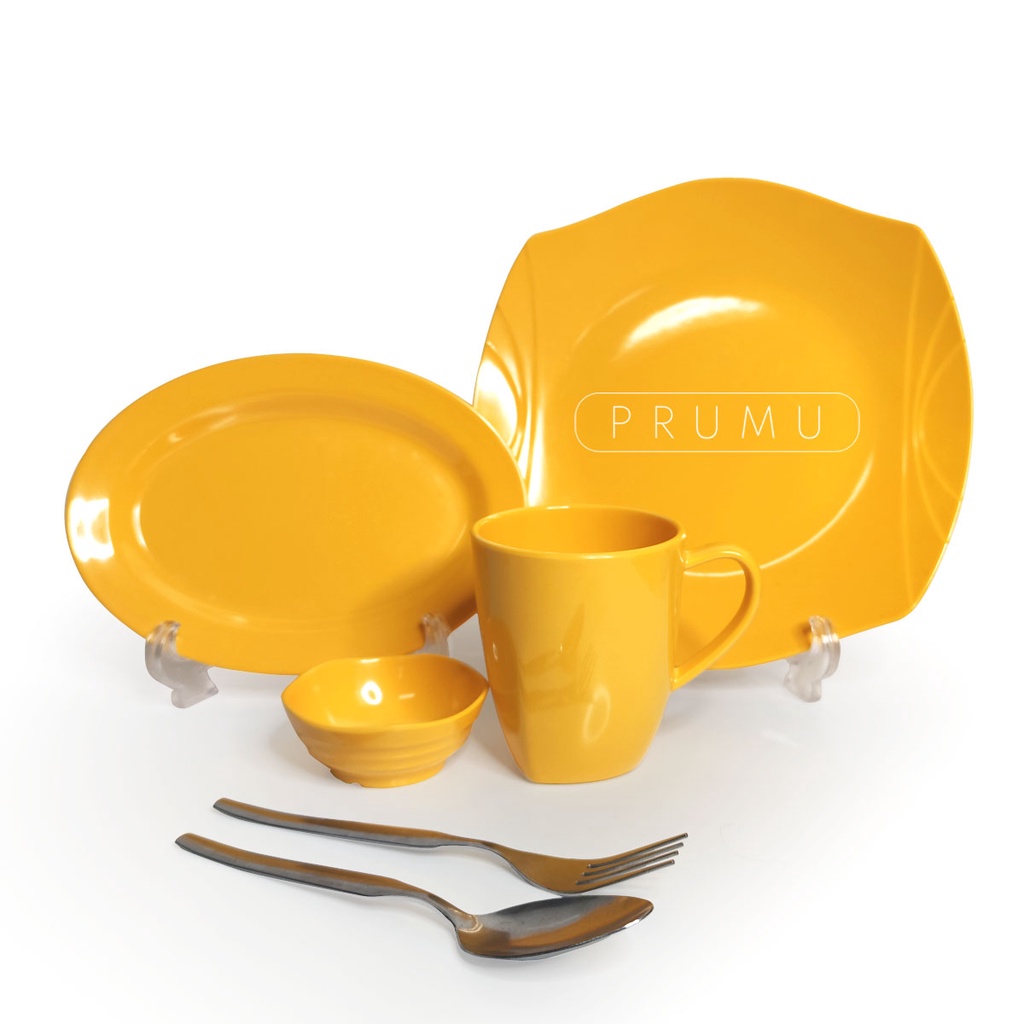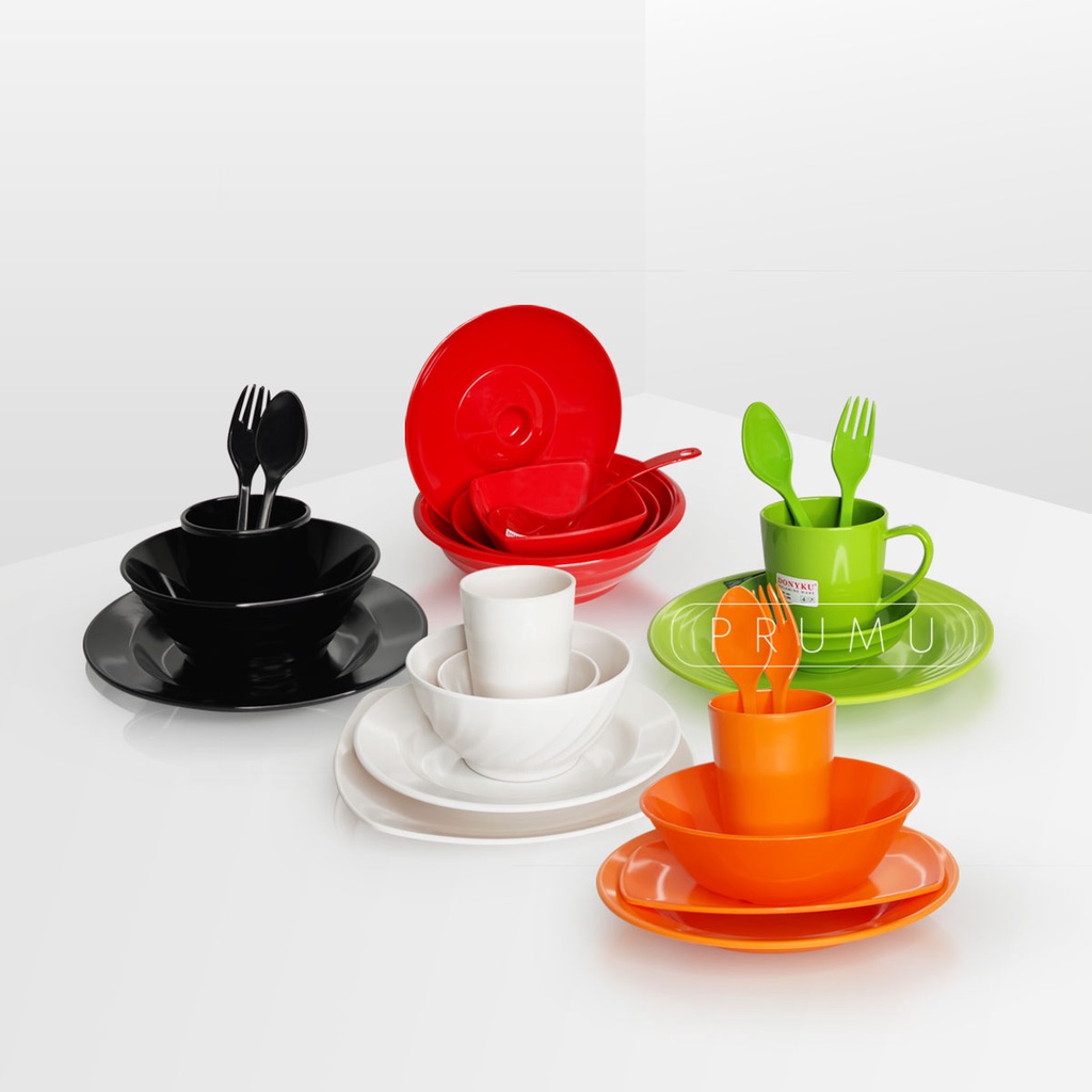 PRUMU Melamin Set Monthly Special - Paket Piring Mangkok Gelas Sendok Garpu Melamin