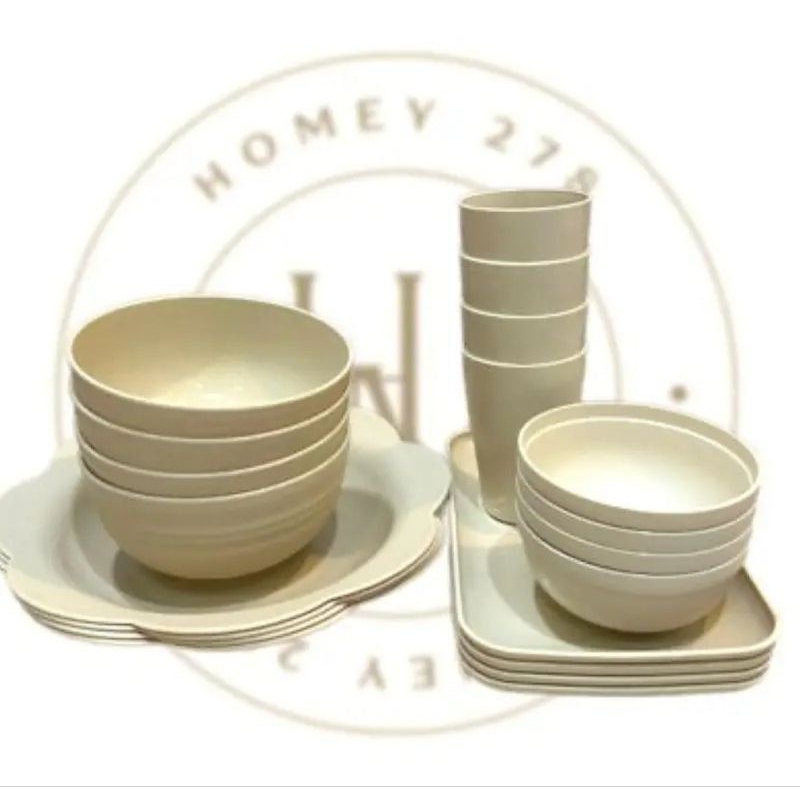PAKET 20pcs : PIRING BUNGA, PIRING PERSEGI, MANGKOK BAKSOK, MANGKOK KECIL, GELAS