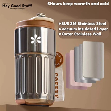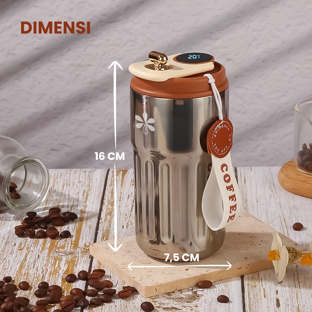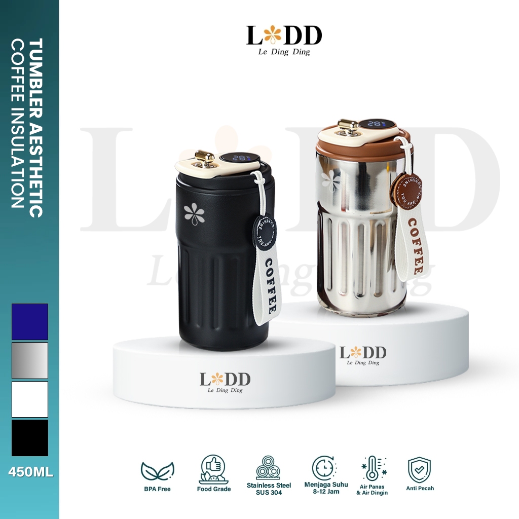 Le Ding Ding - Gelas Tumbler Kopi Botol Minum aesthetic Digital LED Stainless 450ml Termos Kopi Mini