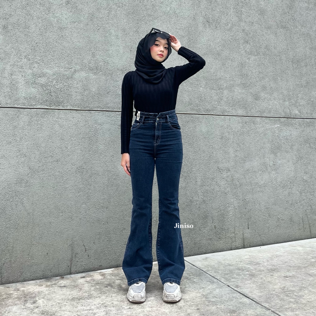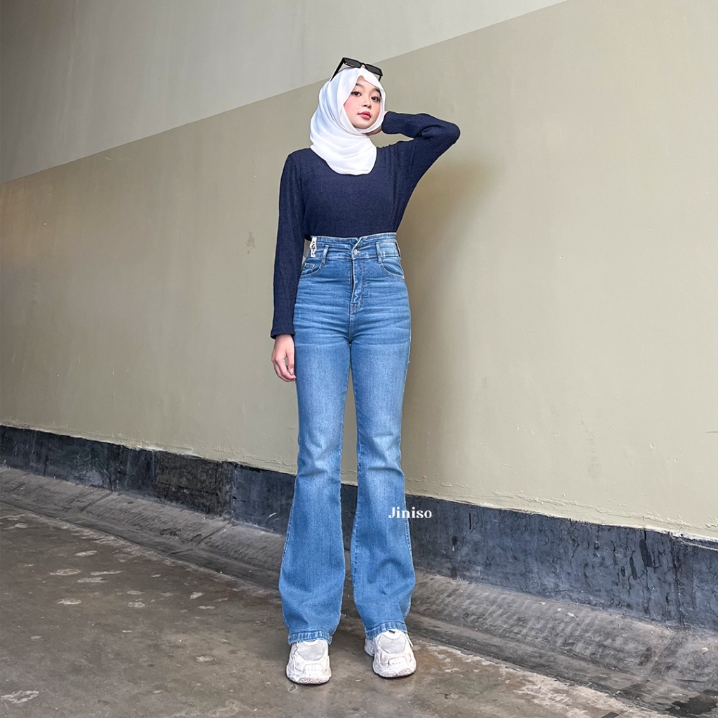Celana Jeans Wanita Jiniso Ultra High Waist Cutbray Stretch Jeans Hangout Standar Jumbo Sobek Termurah Gratis Ongkir