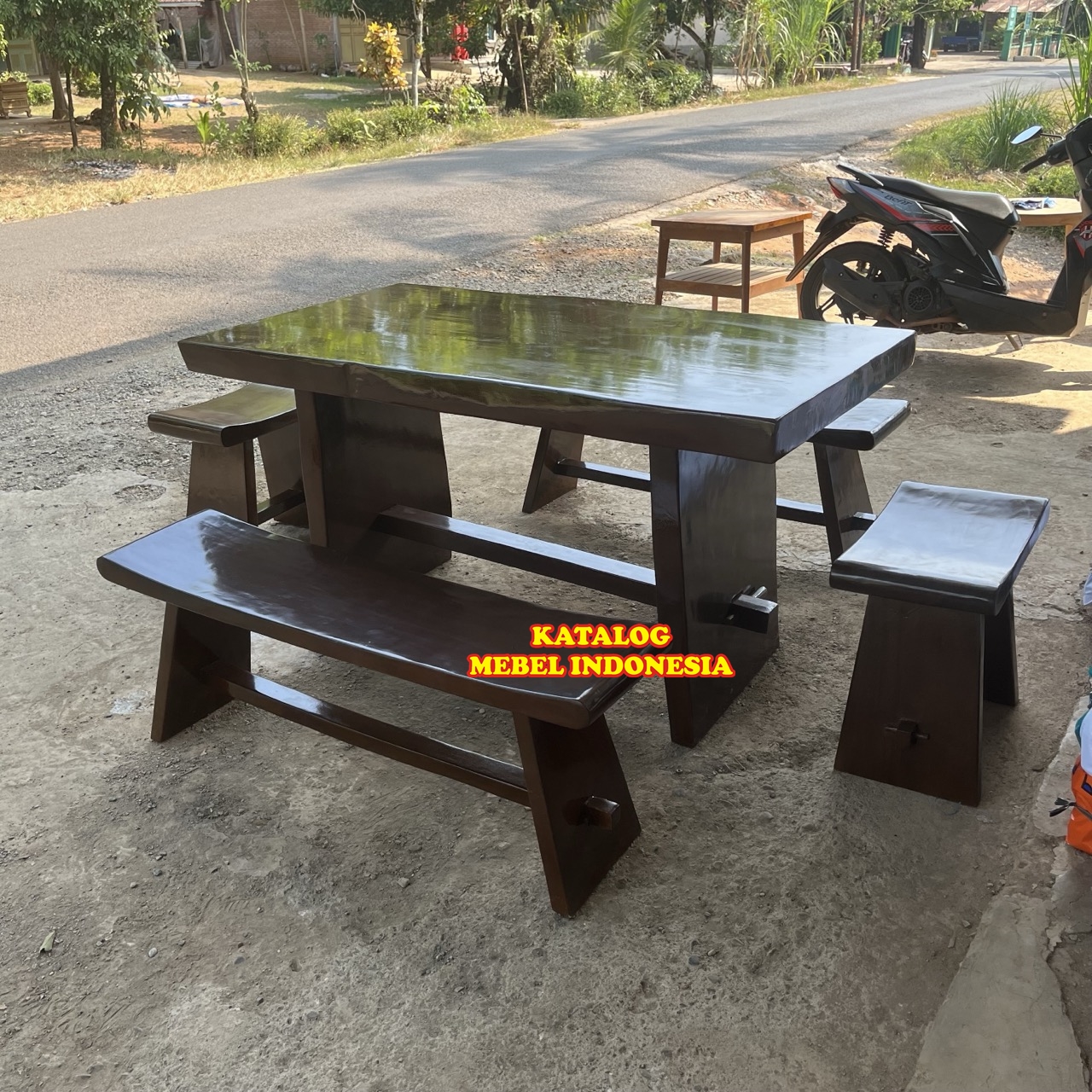 Satu Set Meja Makan Trembesi Custom Tebal 8 Cm - Furniture Berkualitas