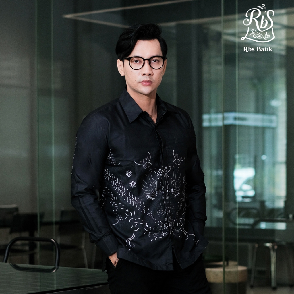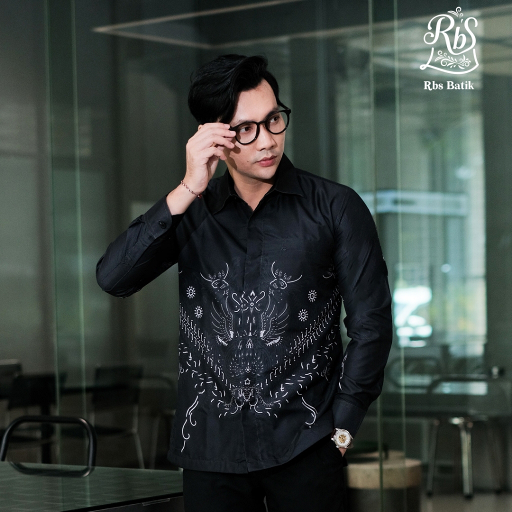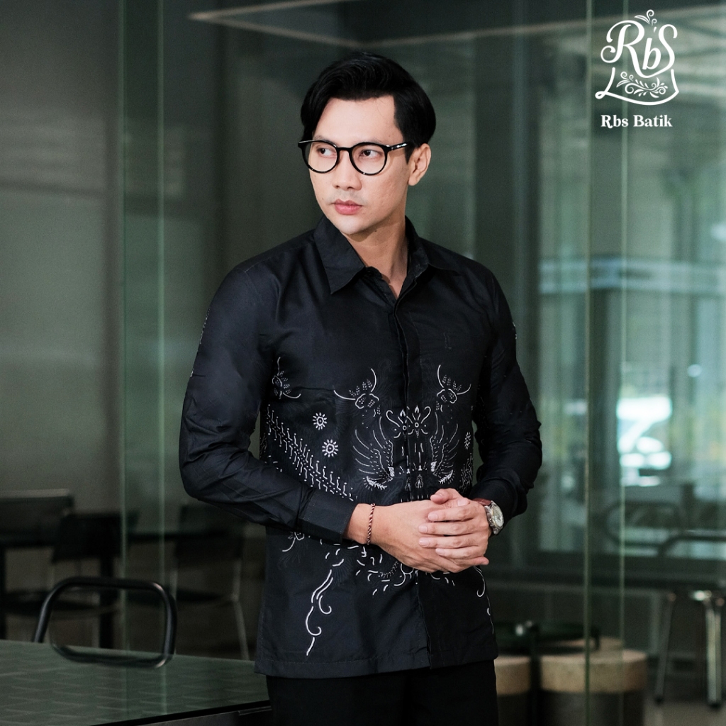 RBS Batik - Kemeja Batik Pria Drupada Slimfit Lapis Furing Warna Hitam Motif Semi Gurdo