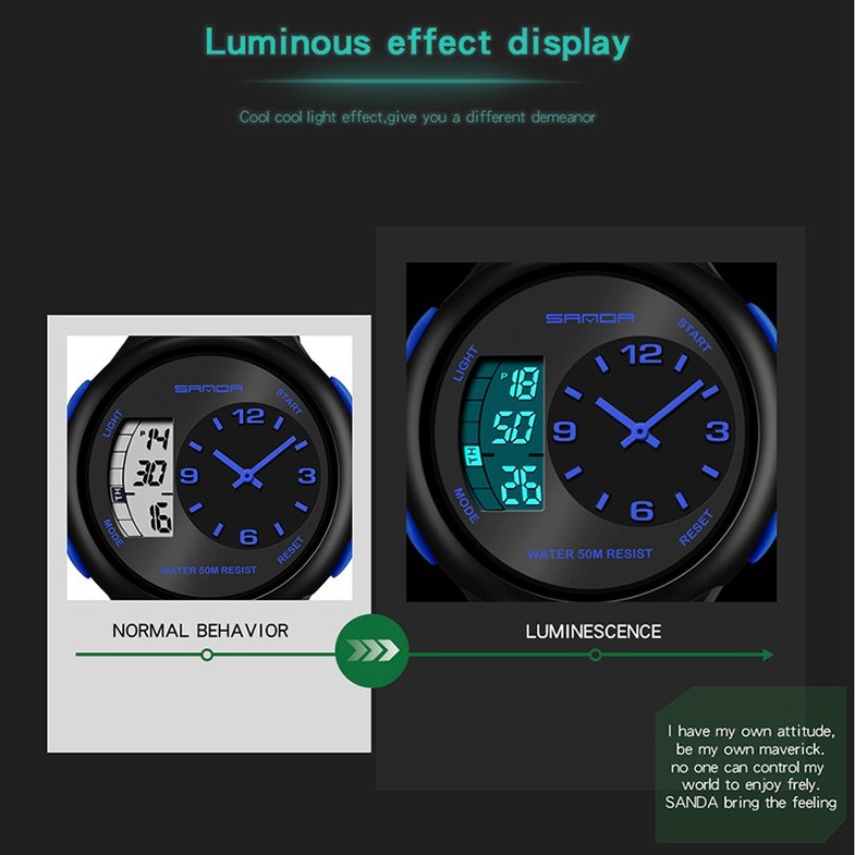 [Mall] Jam Tangan Pria Sanda 763 Digital Analog Tali Rubber Chronograph Anti Air 100 Original
