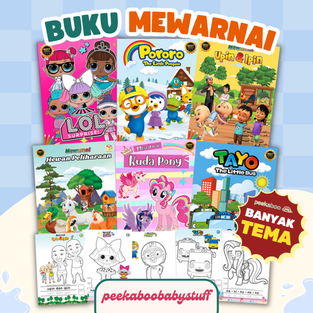 BUKU MEWARNAI FULL COLOUR (FC) A5 || BUKU WARNA FULL COLOR ANAK PAUD TK SD MEMBACA MENULIS BERHITUNG UPIN IPIN TAYO PORORO BINATANG BUAH SAYURAN