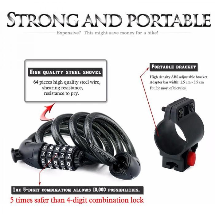 5 Digit Kode Angka Kunci Gembok 64 Besi Motor Sepeda 12 meter Kuat