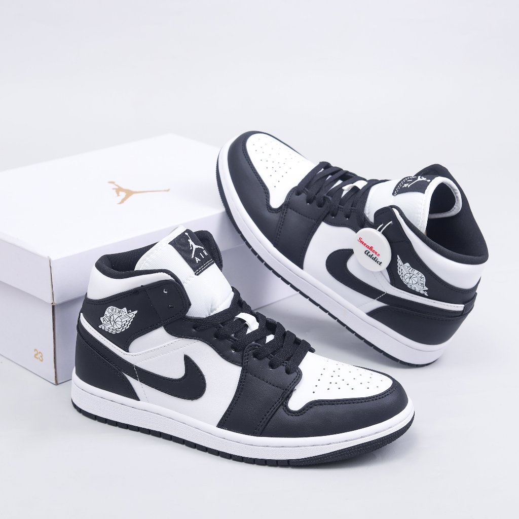 SEPATU SNEAKERS NIKE AIR JORDAN 1 MID BLACK AND WHITE PANDA 100 PERSEN BNIB GLOBAL MARKET