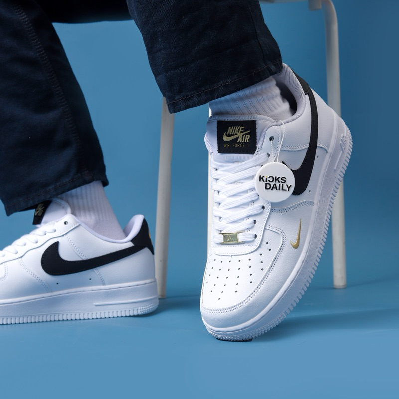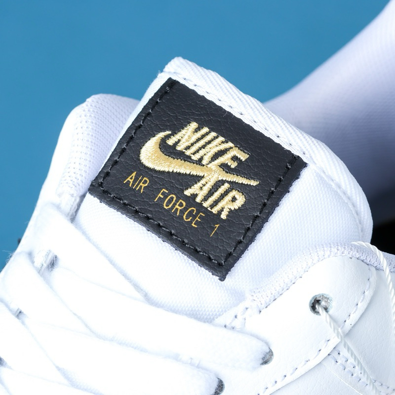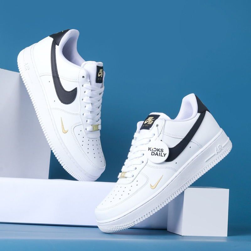 NIKE AIR FORCE 1 LOW '07 ESSENTIALS WHITE BLACK GOLDS MINI SWOOSH 100 PERSEN BNIB GLOBAL MARKET