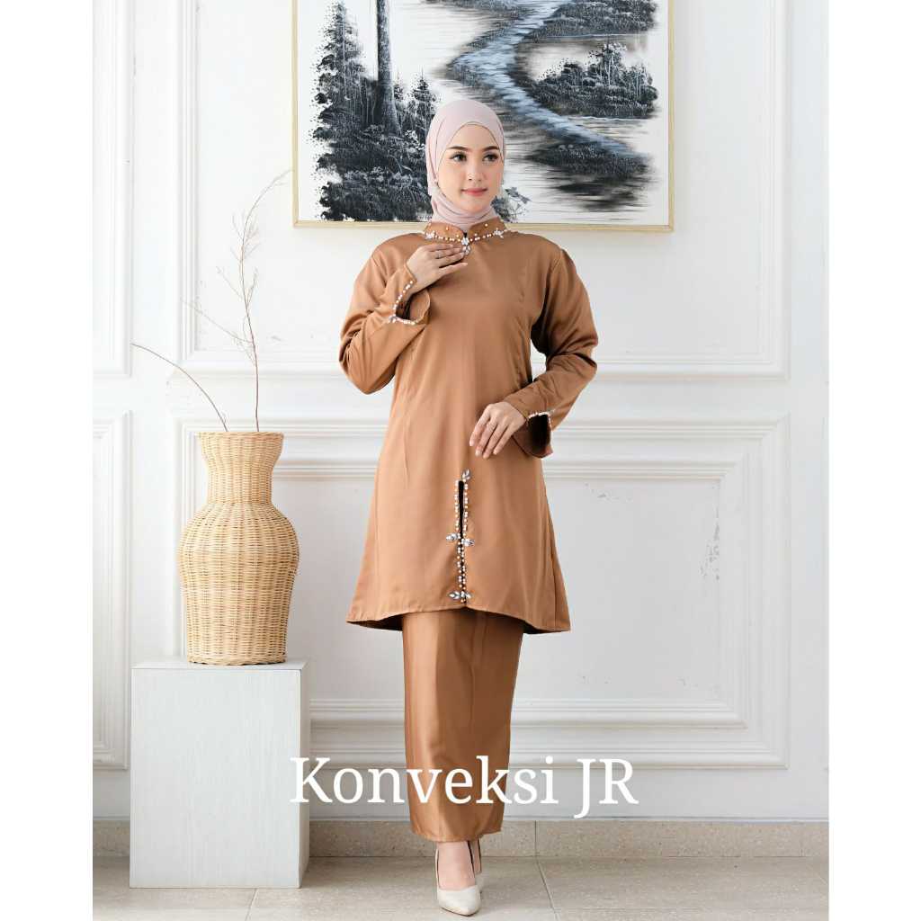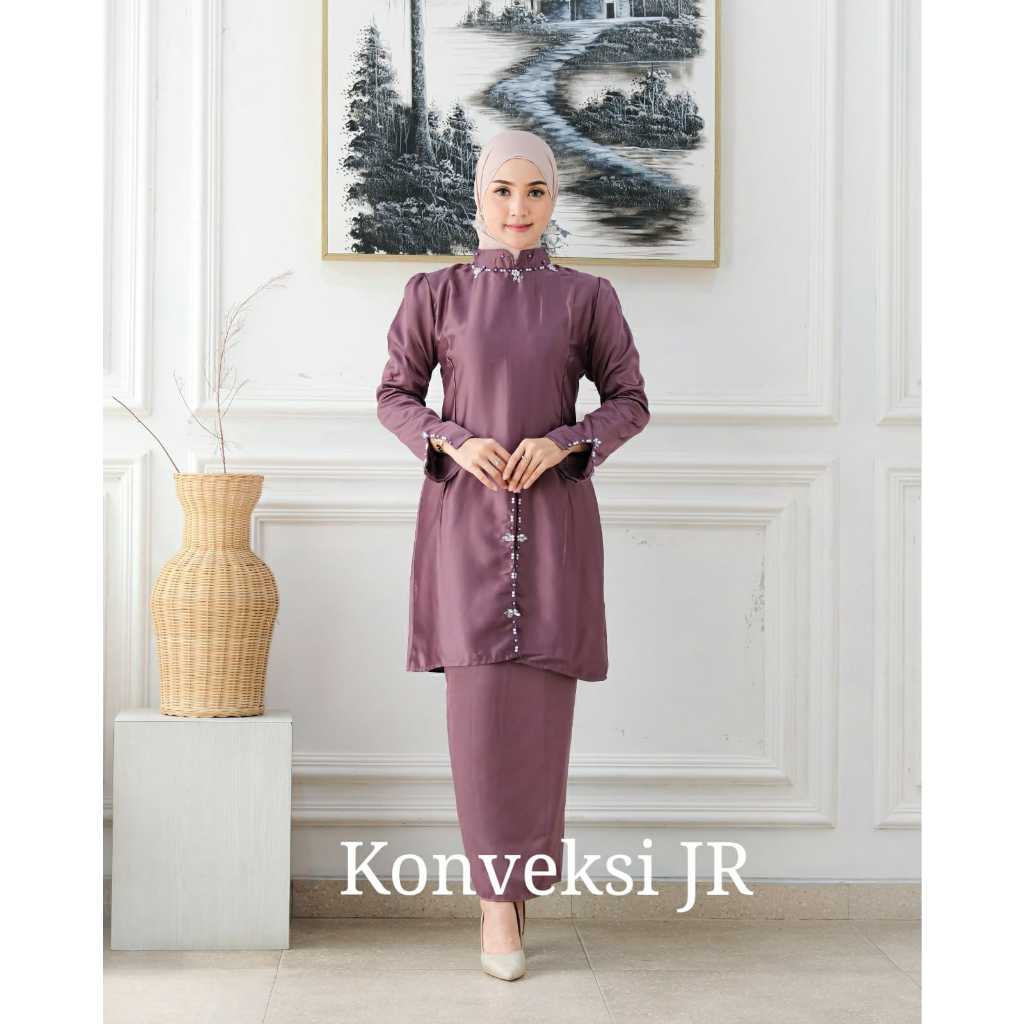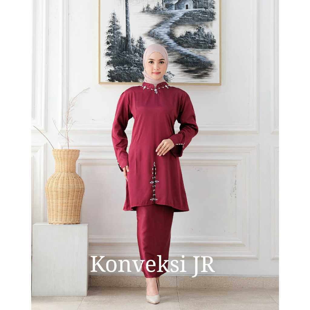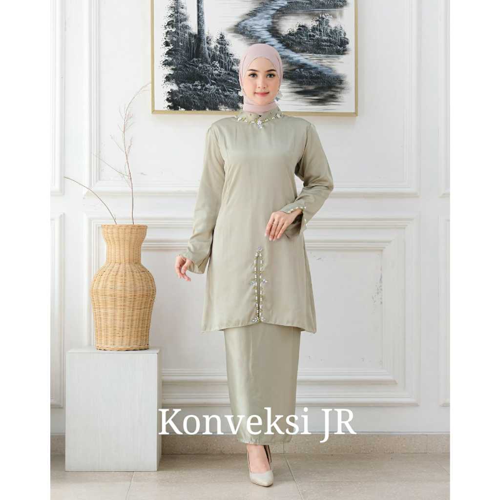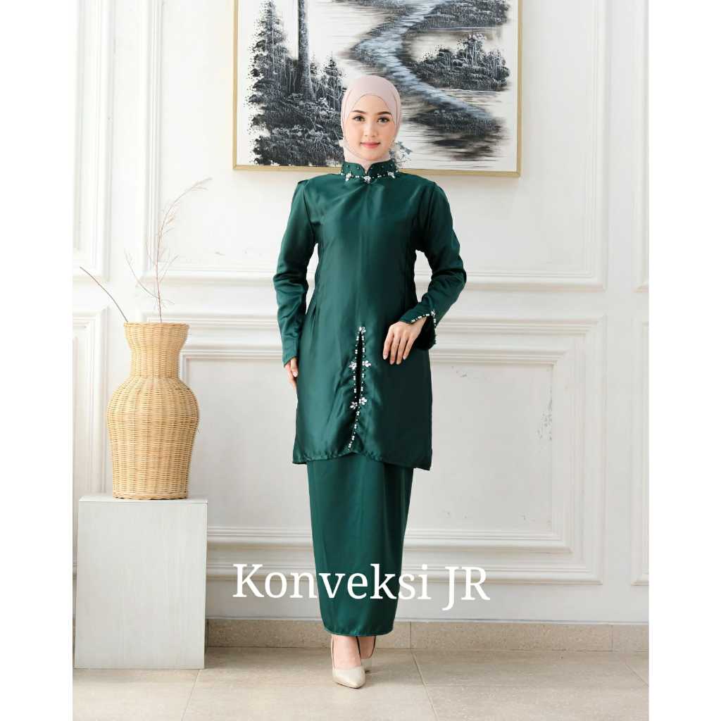 ( TERLARIS ) Nurhalizah Set Baju Kurung Melayu Satin Velvet - Setelan Kebaya Modern - Oneset Kurung Melayu Payet