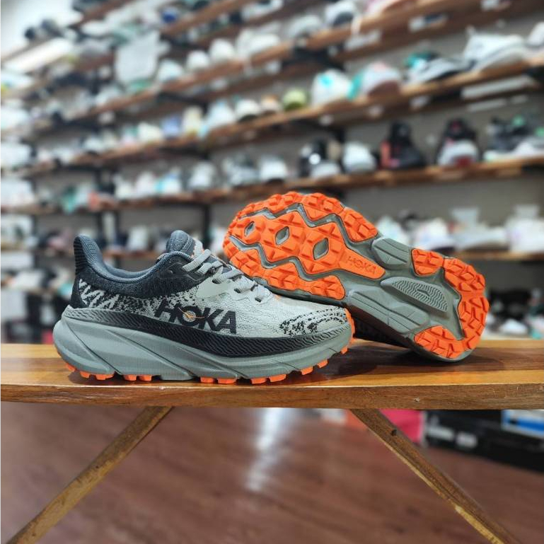 SEPATU SNEAKERS PRIA WANITA HOKA GREY OREN RUNNING RUN PREMIUM100 PERSEN