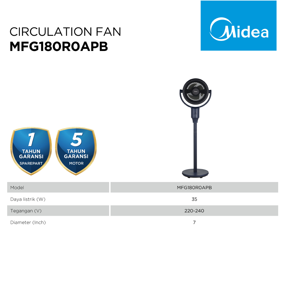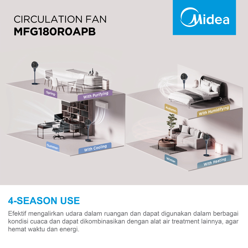 Midea MFG180R0APB Kipas Sirkulasi / Circulation Fan Adjustable Height and Aroma Diffuser