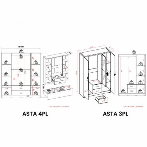 [Star] Lemari Pakaian Pira Metropolis OX - ASTA 4PL A Lemari Pakaian 4 Pintu dengan Laci