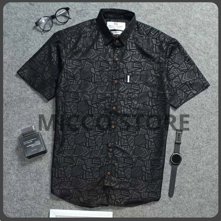 Kemeja Pria Lengan Pendek Terbaru Kemeja Hitam Detak Original Kemeja Embos Motif Etnik Hitam