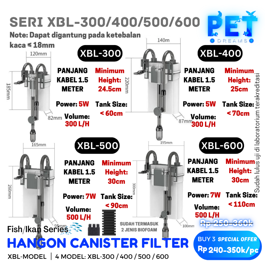 External Canister Aquarium Hangon Filter Gantung Skimmer Hang On Skimer Akuarium Aquascape Ikan